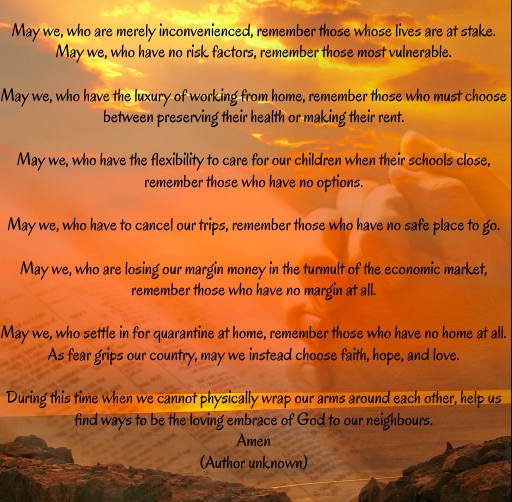 We pray for ourselves and everyone encountering great hardship at this time.