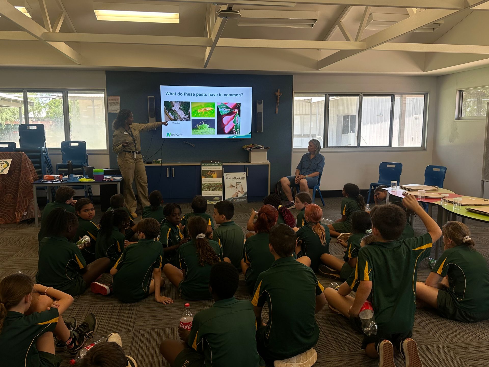 In week 1, the Year 4, 5 and 6 students had the great opportunity to participate in the Biosecurity Blitz incursion with Haweya, a Development Officer with the Department of Primary Industries and Regional Development (DPIRD). It was fascinating to learn to discover new organisms, learn about plant pests and diseases and understand the crucial role plant biosecurity plays in protecting our environment from them. It was a hands-on incursion and designed to spark curiosity, teaching students how to identify plant pests, understanding how it is spread, and actively participate in biosecurity surveillance through the use of the MyPestGuide app. It has been a valuable and fun experience for all of us!